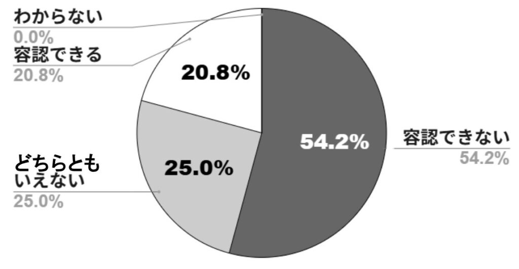 通達から施行までの性急な流れには、文学部教員からも疑問の声が噴出。北大新聞の調査では、研究室配属の変更を年度途中に予告なく通達したことについて、54.2%が「容認できない」と回答した。「どちらともいえない」の中にも「こうした変更にはある程度の猶予期間を設けた方がよく、せめてもう1年待って2026年度の前期授業前の通達でもよかった」等、導入の流れに懸念を示す声も多く、「容認できる」と答えたのは20.8%に留まった。