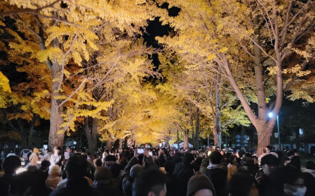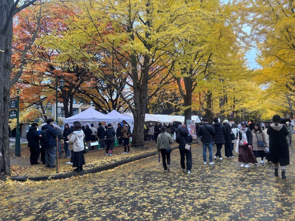 ステージ企画が見送られるなど例年とは異なる形式となったが、いちょう並木には多くの人が訪れ、秋のひとときを楽しんだ。北大の秋を彩る恒例行事として、変わらぬ賑わいを見せた2日間となった。