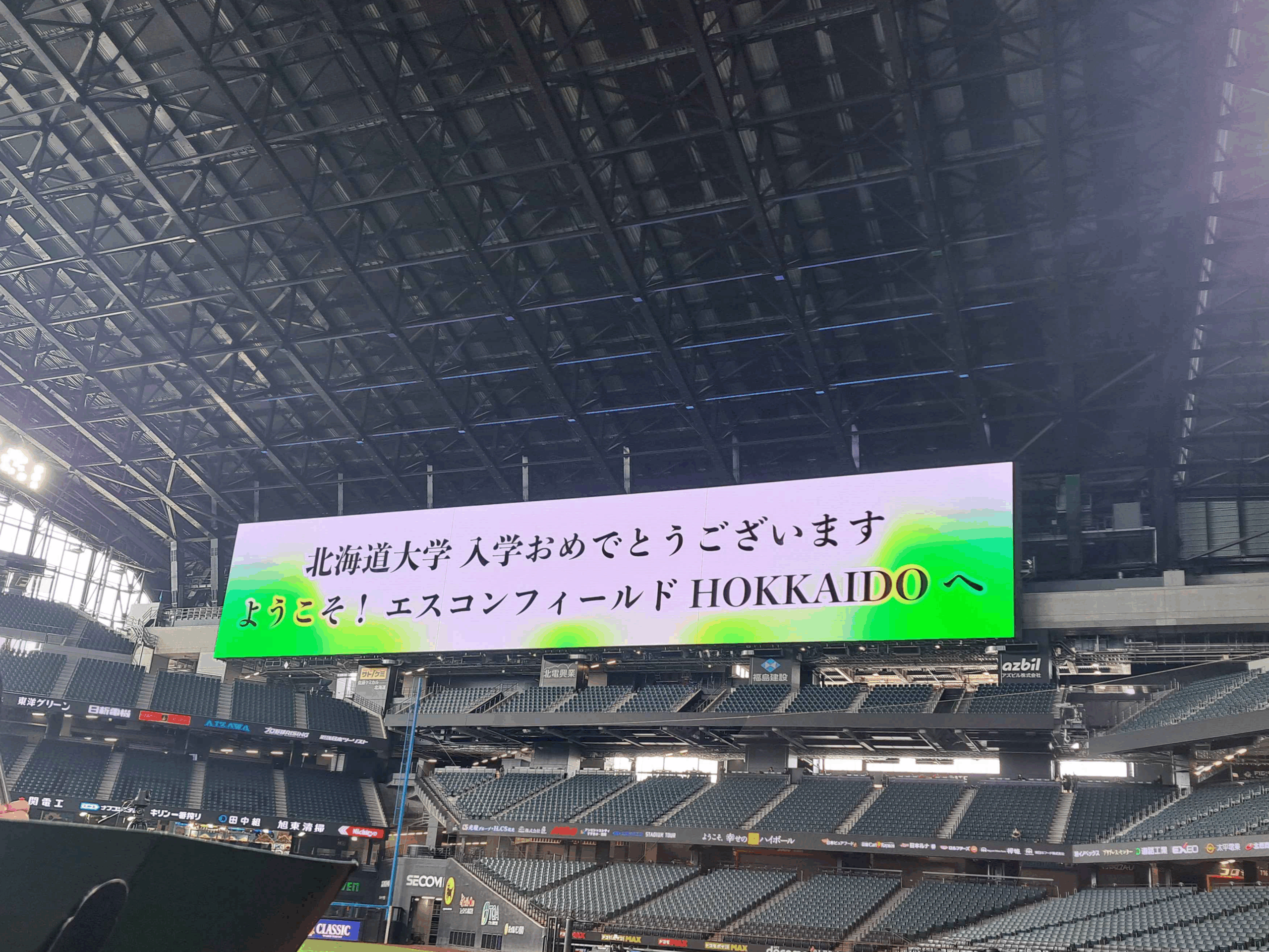 6日、北広島市の「エスコンフィールドHOKKAIDO」で北大の令和8年度の入学式が行われた。