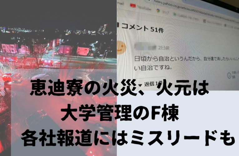 10月30日、北大の学生寮「恵迪寮」にて、3本のガスホースが溶けているのが消防の点検により発覚した。寮内のガスコンロは約100箇所。安全対策が確認できるまで3箇所のガスコンロは使用禁止となったが、11月5日から6日にかけ … Read More